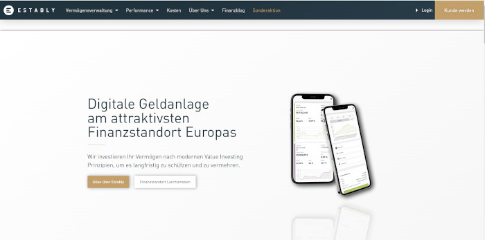 Estably ist ein digitaler Vermögensverwalter mit Sitz im Fürstentum Liechtenstein. Estably ist auch auf dem deutschen Markt sowie in acht weiteren europäischen Staaten aktiv. Deutsche Kunden können den Robo-Advisor ab einer Anlagesumme von 20.000 Euro nutzen. Je nach Risikobereitschaft und Zielvorstellungen stehen verschiedene Anlagestrategien zur Auswahl. Die Verwaltung erfolgt online und mobil über die Estably-App.